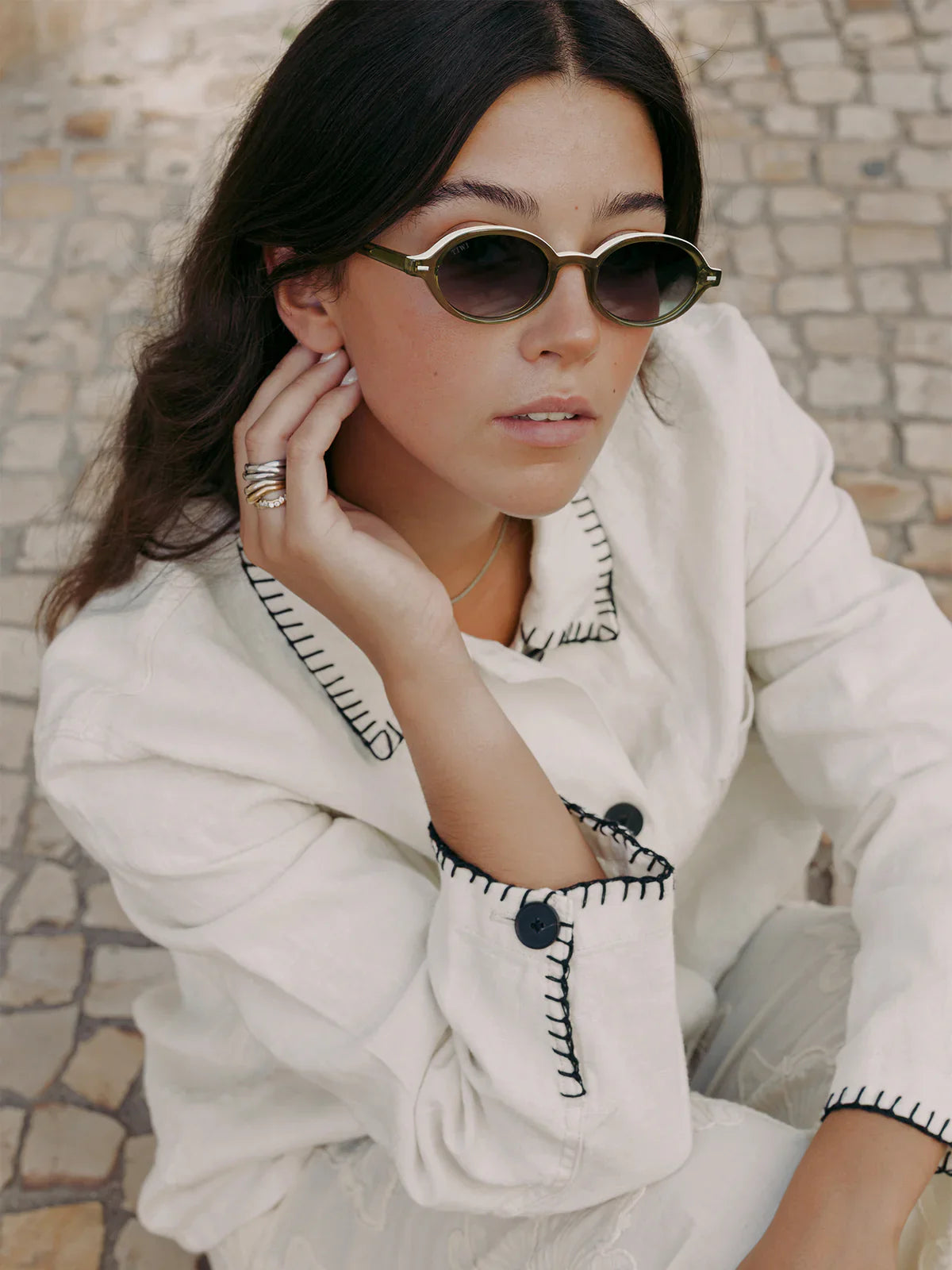 With an oval shape and soft lines inspired by the '90s, BELL stands out for its slim, elongated front, which provides freshness and versatility. A subtle and magnetic design, available in translucent acetates such as ocean blue, shiny beige, or shiny olive green, as well as in more classic versions such as Havana.