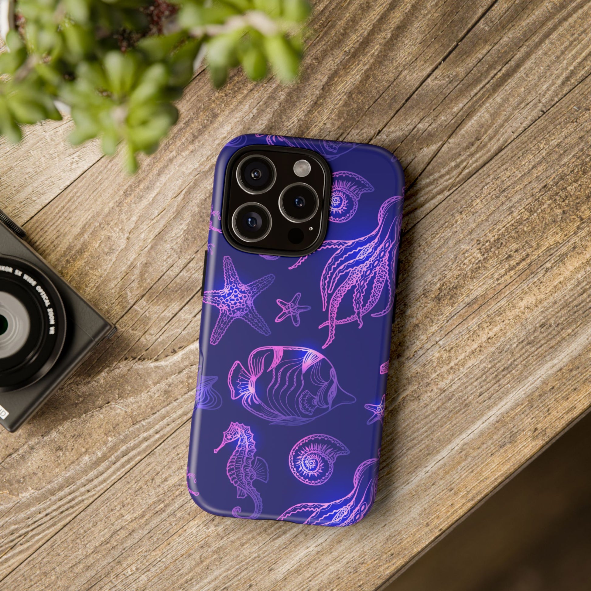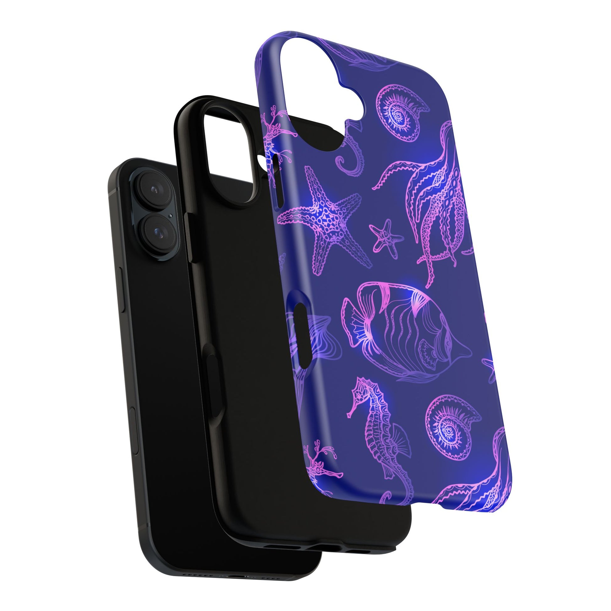Ocean Glow Neon Sea Creatures Phone Case Dual Layer Shockproof Shield For Ocean Lovers