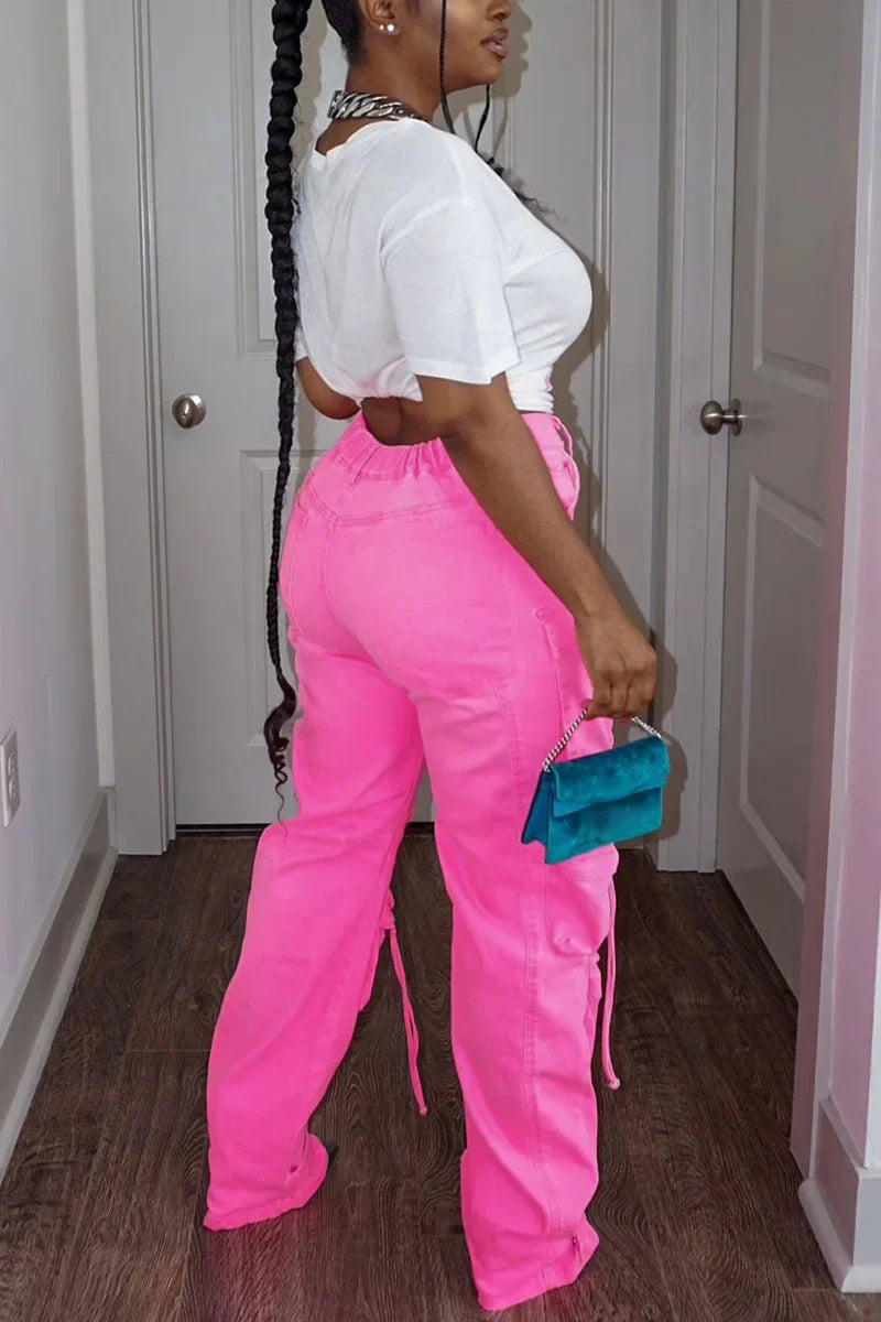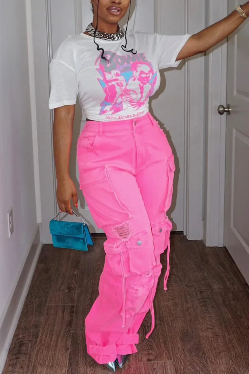 Plus Size Cargo Denim Jeans Pockets Buttons Women Fashion Jeans Pant High Waist Casual Streetwear Vintage Hip Hop Trousers Pant