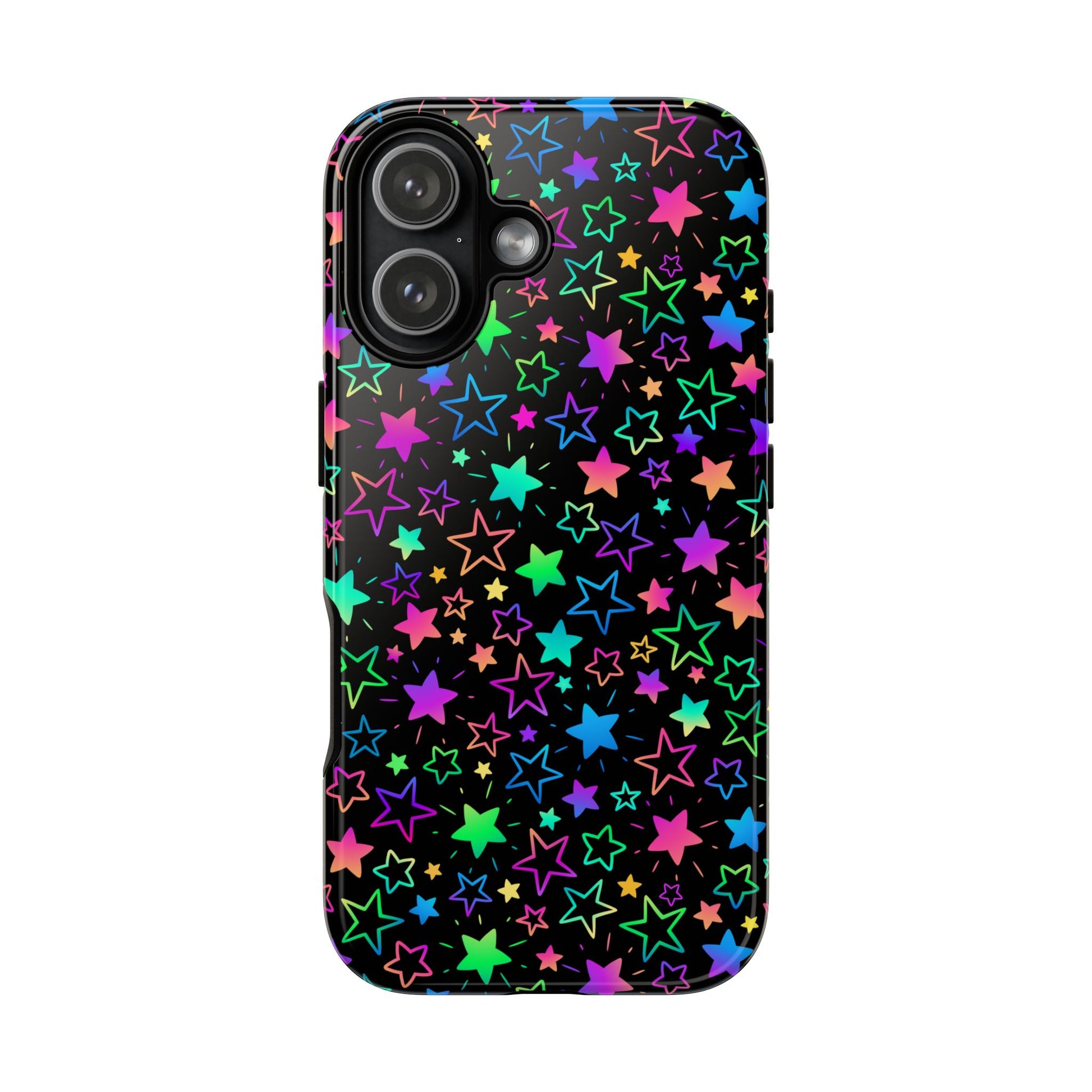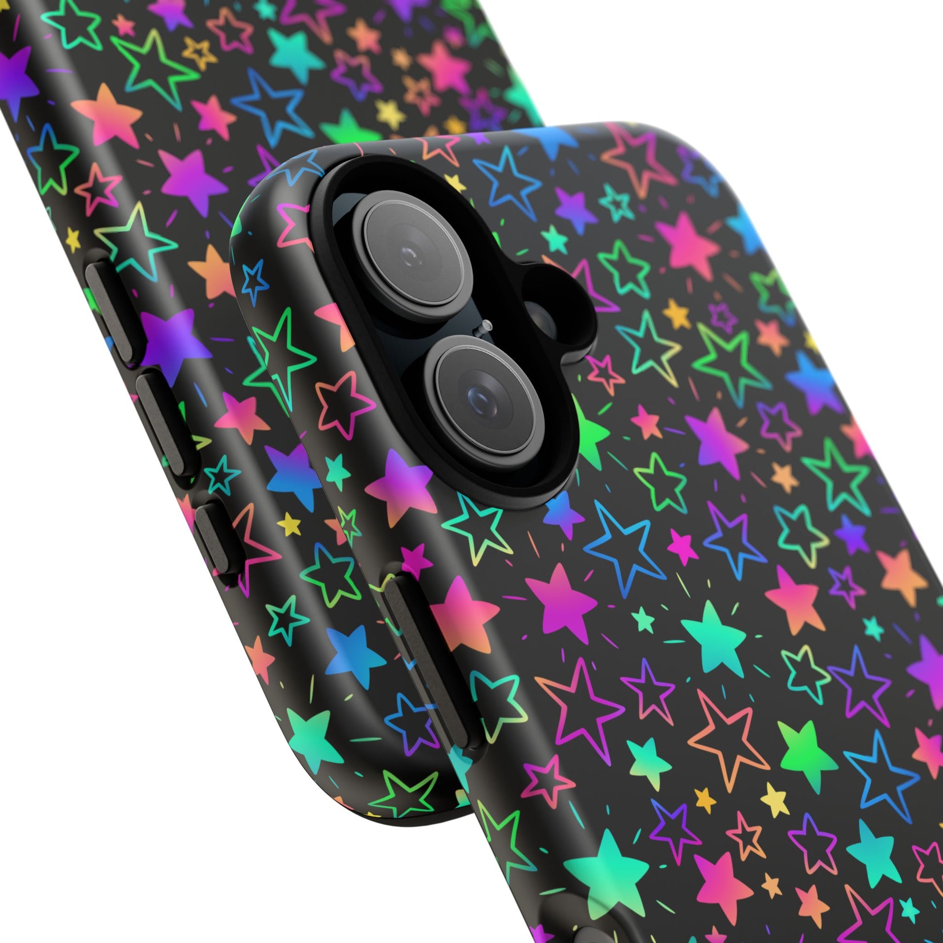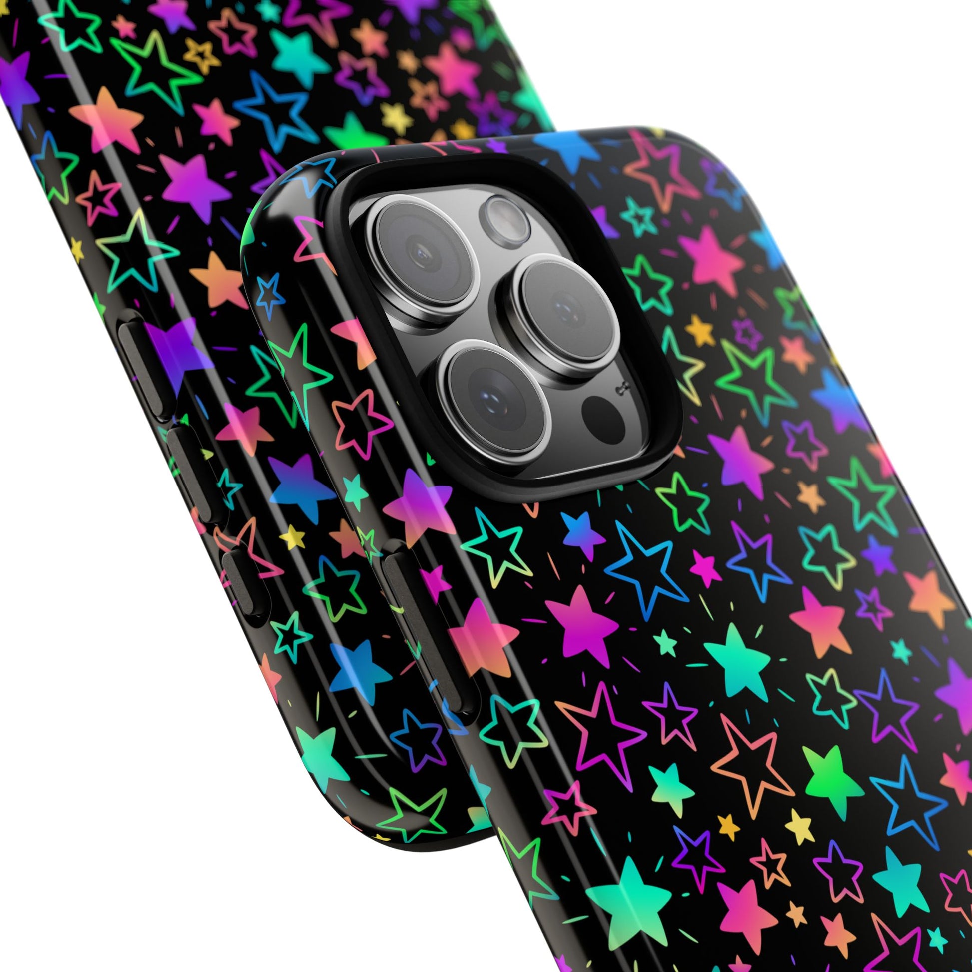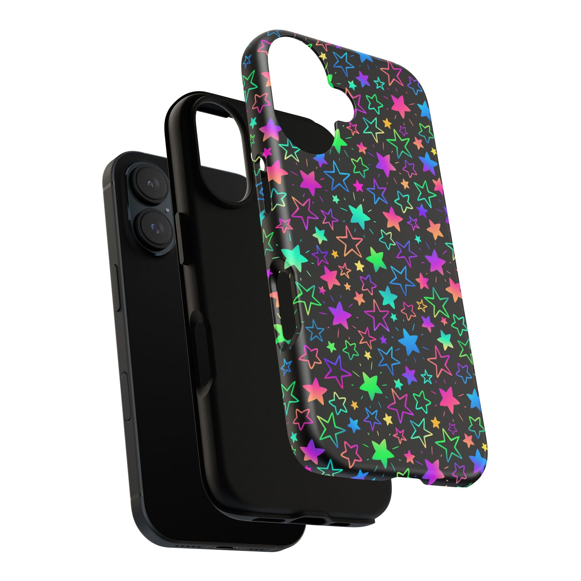 Starburst Neon Phone Case Protective Dual Layer Shock Absorption With Colorful Glow Stars For Trendy Nightlife Fans