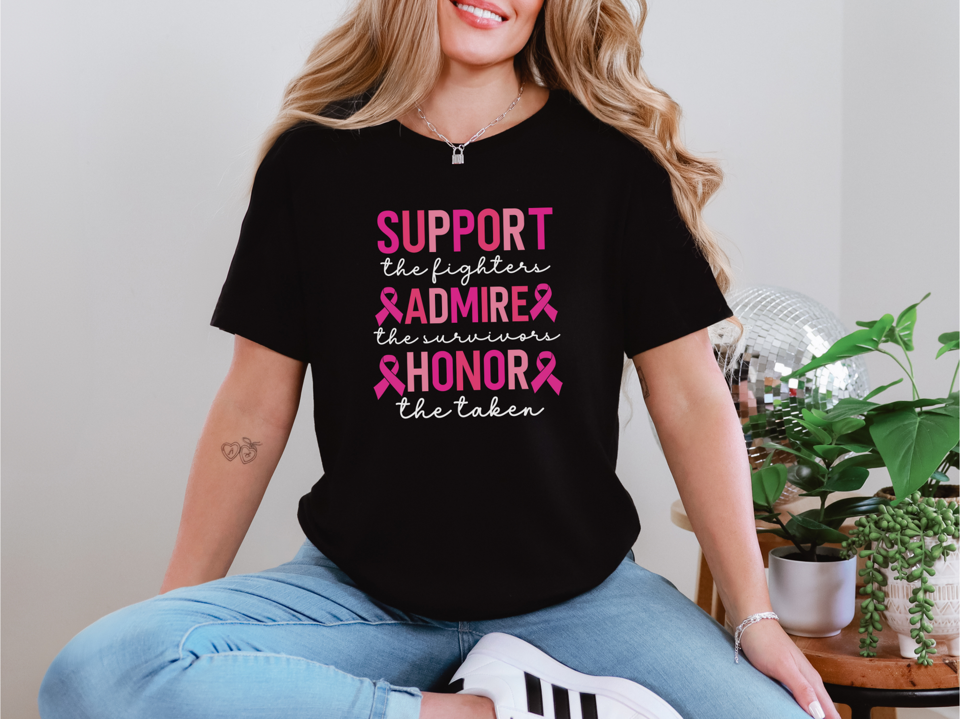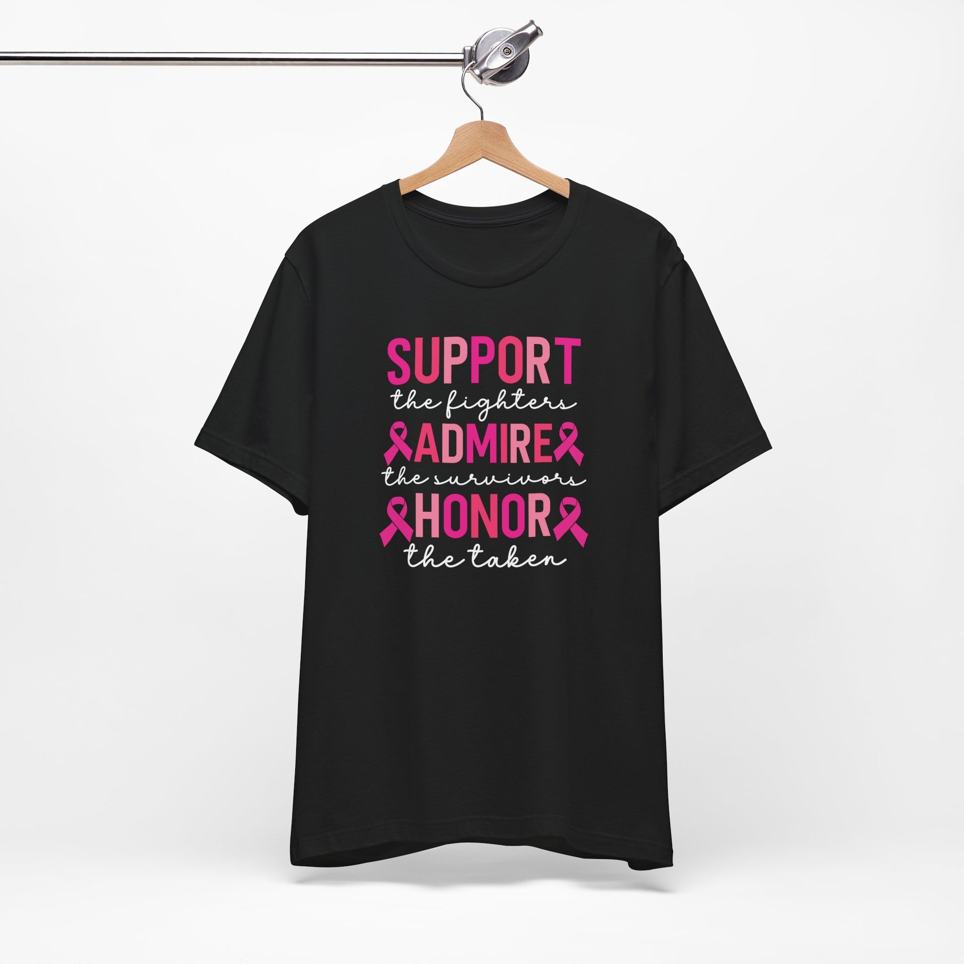 This unisex jersey short sleeve tee is more than just a piece of clothing; it’s a statement of support and solidarity. With an inspiring print that encourages you to support the fighters, admire the survivors, and honor the taken, it’s perfect for anyone who wants to make a meaningful impact. The soft, lightweight fabric feels gentle against the skin, offering comfort whether you’re out and about or lounging at home. Ideal for casual gatherings, charity events, or everyday wear, this tee can easily transition from day to night. Great for family and friends alike, it’s a must-have for those who are passionate about raising awareness, especially during Breast Cancer Awareness Month or other health-related celebrations. Wear it proudly to showcase your support and spark conversations about important causes!